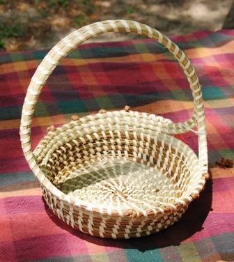 ROUND CROSSHANDLE SWEETGRASS BASKET W/ LOVE KNOTS